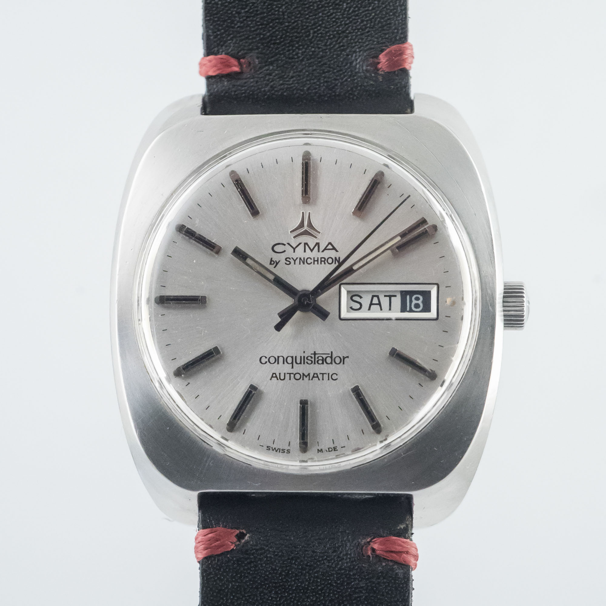 At one point in time the house of Cyma-Tavannes was Switzerland’s largest supplier of precision watches and was based in the town of, you guessed it, Tavannes. Hailing from Le locle but starting his own watch manufacturing company, Frederic Henri Sandoz was a pioneer in industrial watch-making systems and had as early as 1938 have a factory with 2200 machine-tools that could churn out 4000 movements a day. Some of these would be sold as bare movements that would be rebranded as something else in the emerging markets of the East. What we have here is from the period when Synchron agglomerated several Swiss watch companies under their fold. In unpolished stainless steel cushion case, this Conquistador will make believers out of the faithless.