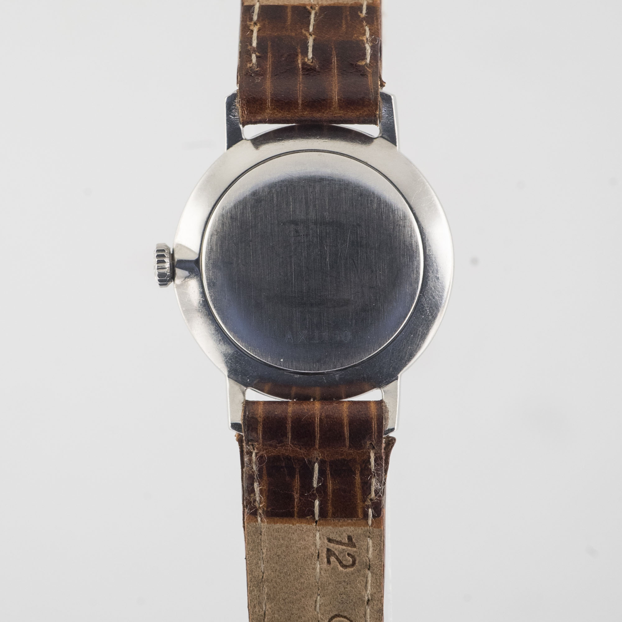 Crown is unsigned and is most likely a replacement. Some very minor plating rubbing loss at the back of the lugs.
